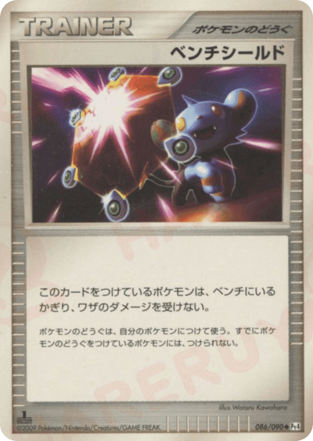 このカードをつけているポケモンは、ベンチにいるかぎり、ワザのダメージを受けない。