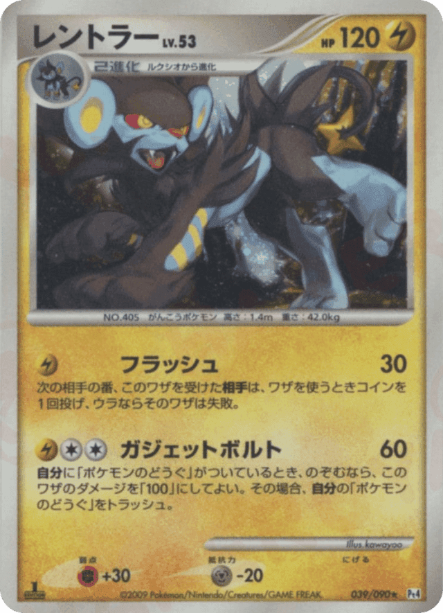 Gadget Bolt60Cost: 3自分に「ポケモンのどうぐ」がついているとき、のぞむなら、このワザのダメージを「100」にしてよい。その場合、自分の「ポケモンのどうぐ」をトラッシュ。