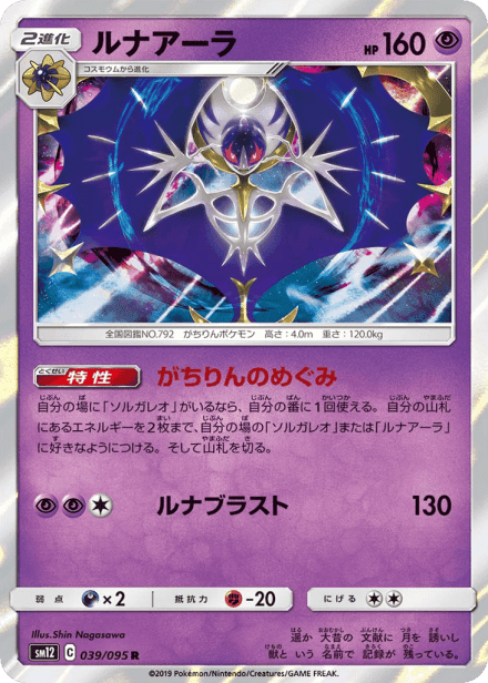 オルタージェネシス (Alter Genesis) is the SM12 expansion of the Japanese Pokémon Trading Card Game's Sun & Moon series, released in Japan on 2019-09-06. The set is catalogued with a total card count of 117 and a printed total of 95, and it was issued in Japanese during the late Sun & Moon era. Collectors can expect a mix of Pokémon, Trainer, and Energy cards in a range of rarities, with holo, full-art and other collector-focused treatments typical of Sun & Moon releases. The expansion is a physical Japanese set rather than online-only, and its packs are sought by collectors looking for alternate art and higher-rarity chase cards.