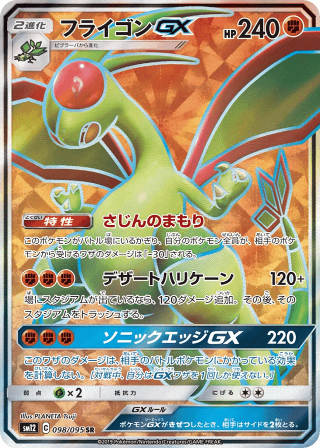 Sonic Edge-GX220Cost: 3このワザのダメージは、相手のバトルポケモンにかかっている効果を計算しない。[対戦中、自分はGXワザを1回しか使えない。]