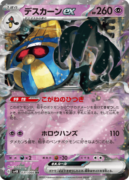 古代の咆哮 (Ancient Roar) is a Japanese expansion of the Pokémon Trading Card Game in the Scarlet & Violet series, released on 27 October 2023 and identified by the set code SV4K. The expansion is listed with 95 cards total and a printed total of 66 for the Japanese release. As a Scarlet & Violet–era set it contains the usual mix of Pokémon, Trainer, and other card types across common rarity tiers and includes holographic and special-art prints. Collectors can expect themes suggested by the title that lean toward ancient or primal motifs alongside the standard assortment of playable and collectible rarities.