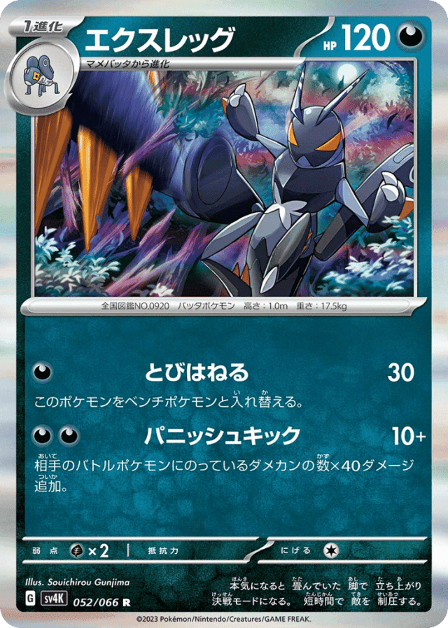 Punishing Kick10+Cost: 2相手のバトルポケモンにのっているダメカンの数×40ダメージ追加。