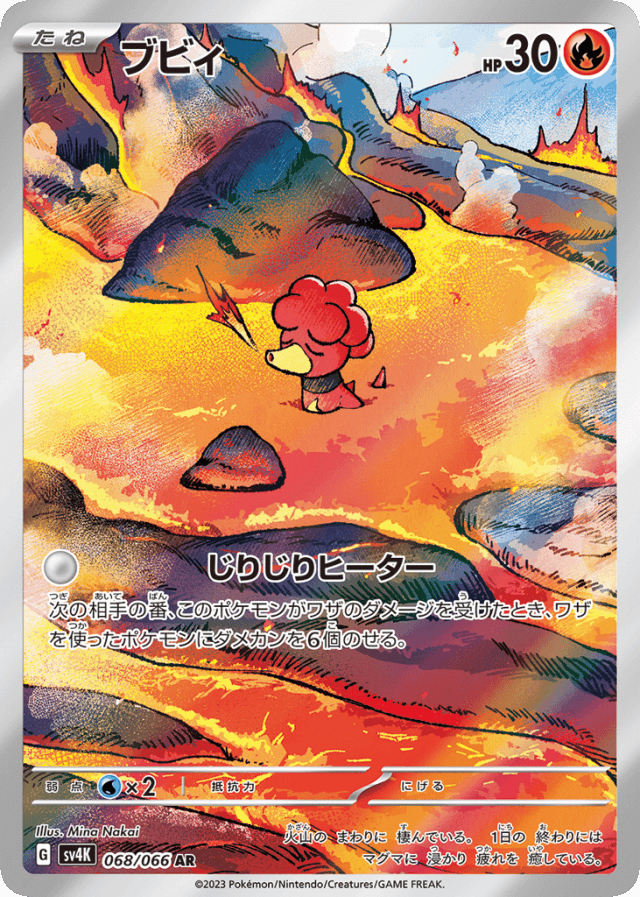 Scorching HeaterCost: 1次の相手の番、このポケモンがワザのダメージを受けたとき、ワザを使ったポケモンにダメカンを6個のせる。