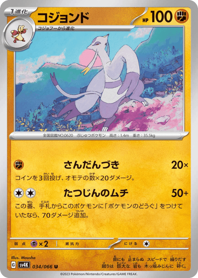 Whip Expert50+Cost: 2この番、手札からこのポケモンに「ポケモンのどうぐ」をつけていたなら、70ダメージ追加。