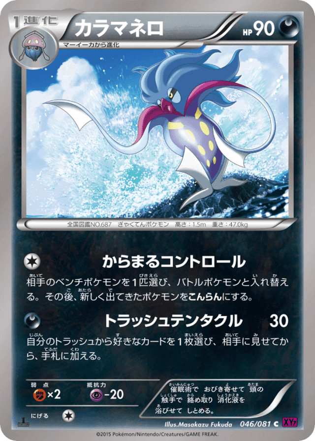 Entangling ControlCost: 1相手のベンチポケモンを1匹選び、バトルポケモンと入れ替える。その後、新しく出てきたポケモンをこんらんにする。