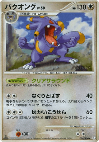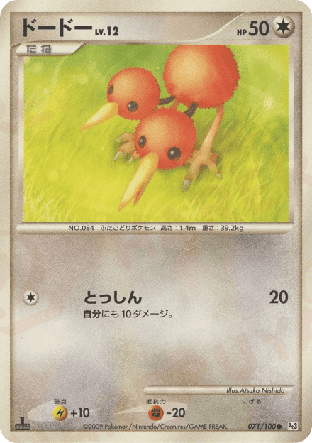 フロンティアの鼓動 (Beat of the Frontier) is the PT3 expansion of the Japanese Pokémon TCG Platinum series, released in Japan on March 6, 2009. The set comprises 100 cards and sits within the Platinum-era product line as a Japanese-language release. It contains the usual mix of Pokémon, Trainer, and Energy cards found in main-set expansions from that period. Collectors typically seek out the set's rarer and holo-print cards and the Platinum-era thematic artwork when completing Japanese Platinum collections.