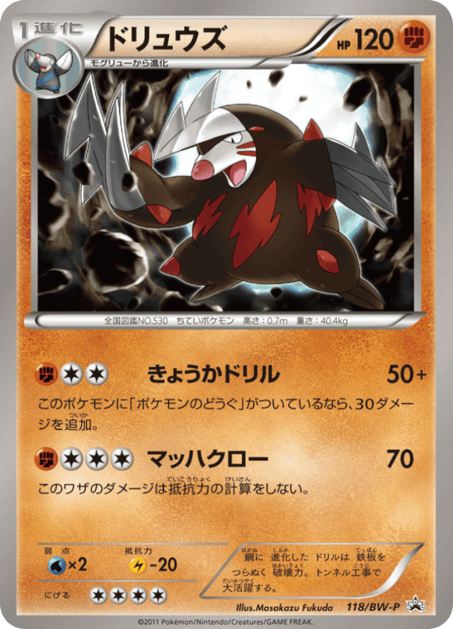 Reinforced Drill50+Cost: 3このポケモンに「ポケモンのどうぐ」がついているなら、30ダメージを追加。