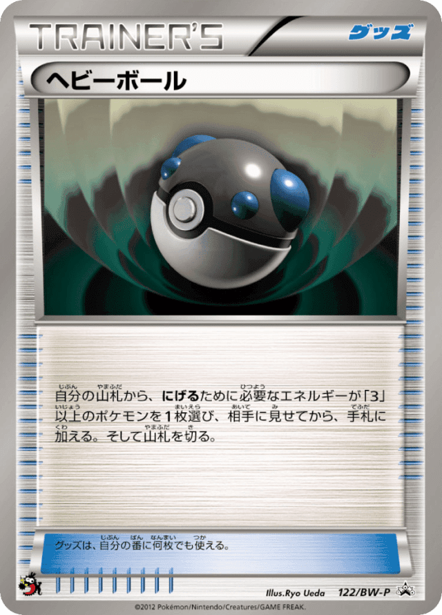 自分の山札から、にげるために必要なエネルギーが「3」以上のポケモンを1枚選び、相手に見せてから、手札に加える。そして山札を切る。 グッズは、自分の番に何枚でも使える。