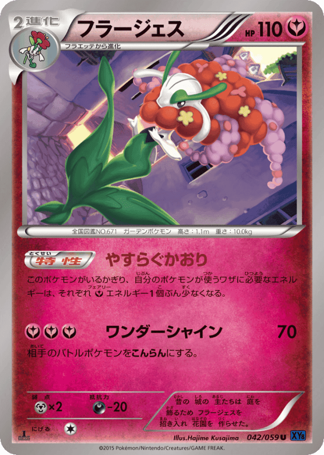 このポケモンがいるかぎり、自分のポケモンが使うワザに必要なエネルギーは、それぞれFairyエネルギー1個ぶん少なくなる。