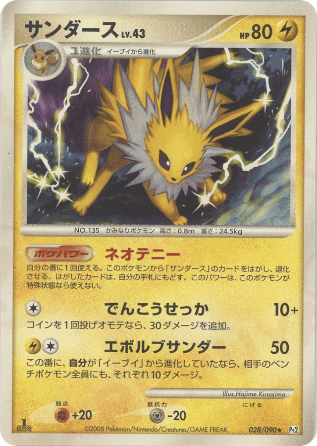 Evolving Thunder50Cost: 2この番に、自分が「イーブイ」から進化していたなら、相手のベンチポケモン全員にも、それぞれ10ダメージ。
