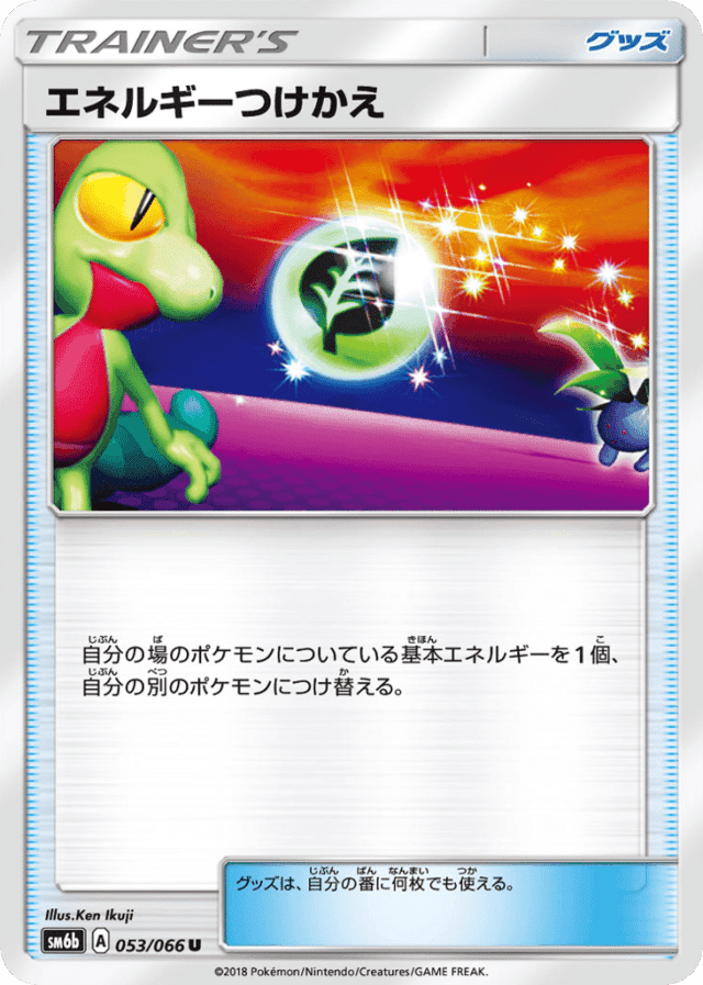 自分の場のポケモンについている基本エネルギーを1個、自分の別のポケモンにつけ替える。