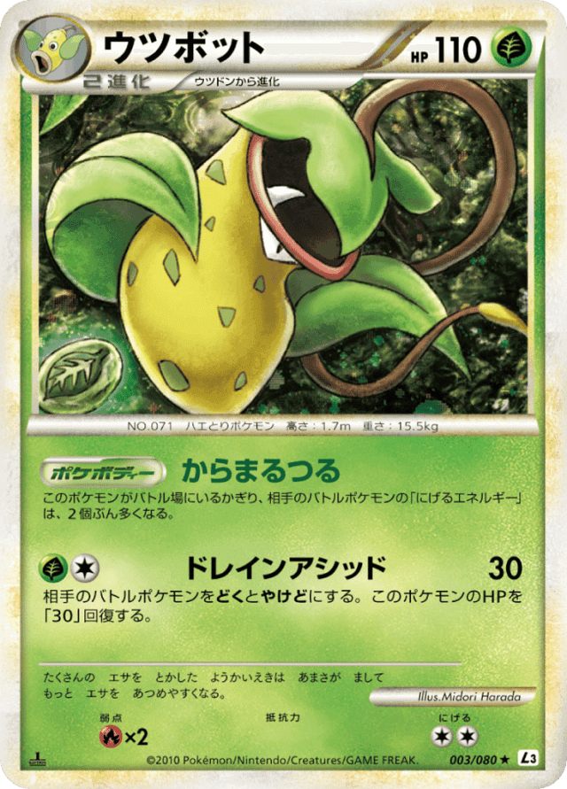 The Defending Pokémon is now Burned and Poisoned. Remove 3 damage counters from Victreebel.