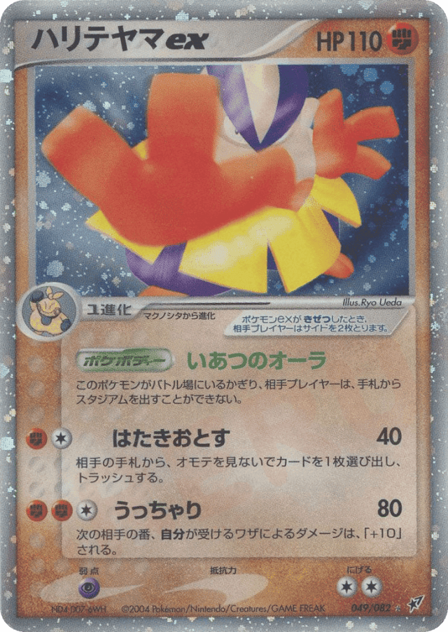 As long as Hariyama ex is your Active Pokémon, your opponent can't play any Stadium cards from his or her hand.