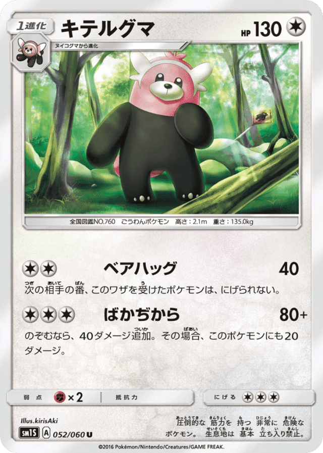 Bear Hug40Cost: 2次の相手の番、このワザを受けたポケモンは、にげられない。