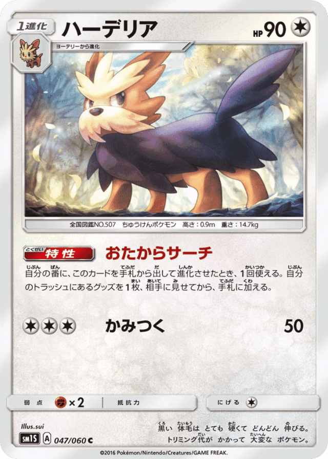 Treasure Hunt自分の番に、このカードを手札から出して進化させたとき、1回使える。自分のトラッシュにあるグッズを1枚、相手に見せてから、手札に加える。