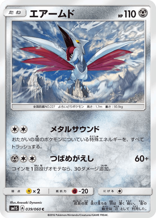 Metallic SoundCost: 2おたがいの場のポケモンについている特殊エネルギーを、すべてトラッシュする。
