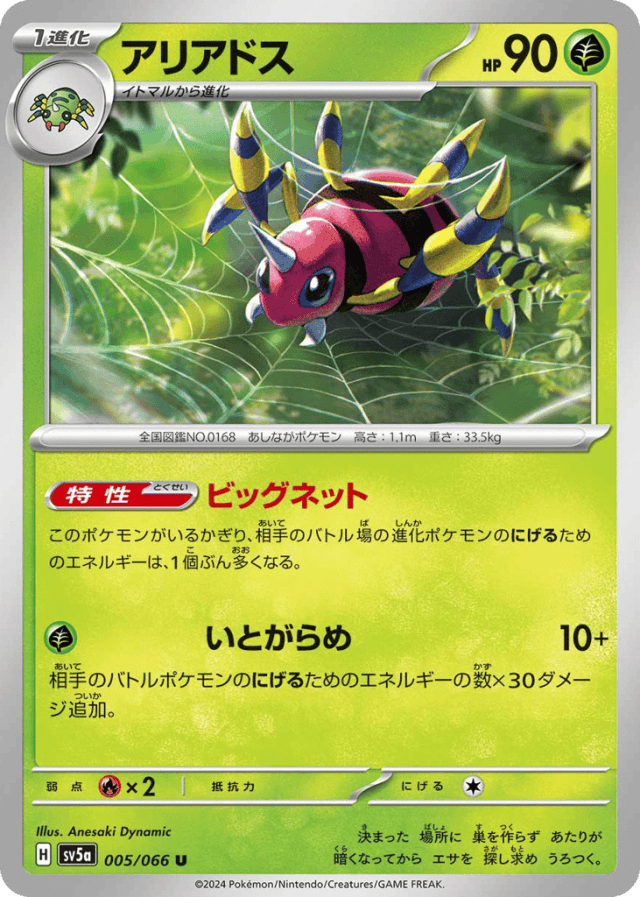 Big Netこのポケモンがいるかぎり、相手のバトル場の進化ポケモンのにげるためのエネルギーは、1個ぶん多くなる。