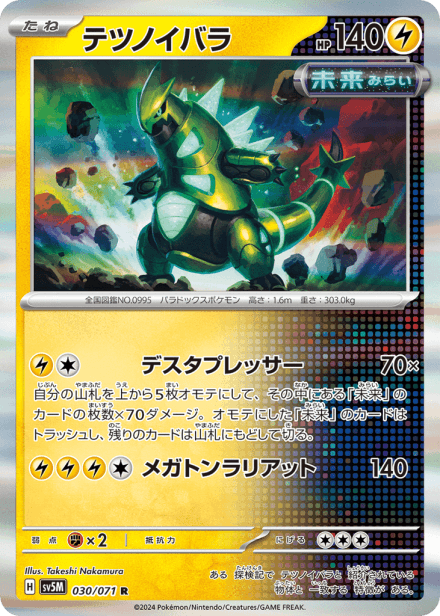 サイバージャッジ (translated as "Cyber Judge") is a Japanese Scarlet & Violet expansion for the Pokémon Trading Card Game released on 2024-01-26. It is part of the Scarlet & Violet series and is catalogued as SV5M; the release is listed with 100 cards total and a printed total of 71, and it is a Japanese-language physical set rather than an online-only release. Collectors can expect the standard mix of Pokémon, Trainer, and Energy cards along with rarer holographic and special-art variants common to Japanese releases, while the provided data does not specify the set's detailed thematic focus or featured mechanics.