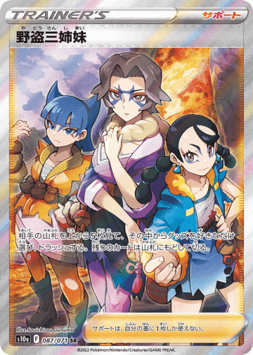 自分の山札を2枚引く。自分のバトルポケモンが名前に「ヒスイ」とつくポケモンなら、さらに2枚引く。 サポートは、自分の番に1枚しか使えない。