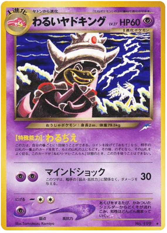 Once during your turn (before your attack), you may flip a coin. If heads, look at the top card of your opponent's deck. Then, you may have your opponent shuffle his or her deck. This power can't be used if Dark Slowking is Asleep, Confused, or Paralyzed.
