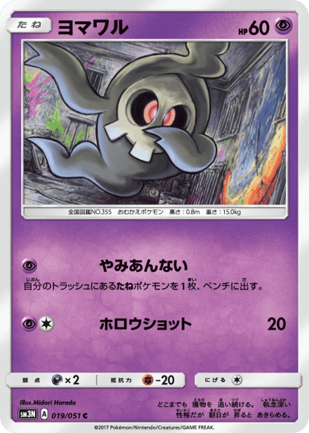 光を喰らう闇 (translated as "Darkness that Consumes Light") is a Japanese-language expansion in the Sun & Moon series of the Pokémon Trading Card Game released in Japan on June 16, 2017 and commonly referenced by the code SM3N. The set is listed with a total of 64 cards and a printed total of 51, indicating there are additional secret or special promotional cards beyond the regular printed index. Collectors typically find a standard mix of Pokémon, Trainer, and Energy cards in common, uncommon and rare rarities, along with the usual Sun & Moon-era special rarities such as holographic and secret/alternate-art cards. Thematically the expansion emphasizes darker-themed Pokémon and imagery suggested by its title, and is sought by collectors for its Japanese printings and any unique artwork or promo inclusions.