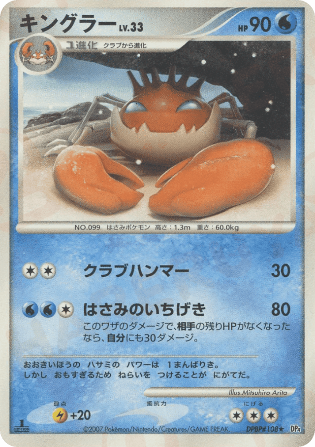 おおきいほうの ハサミの パワーは 1まんばりき。しかし おもすぎるため ねらいを つけることが にがてだ。