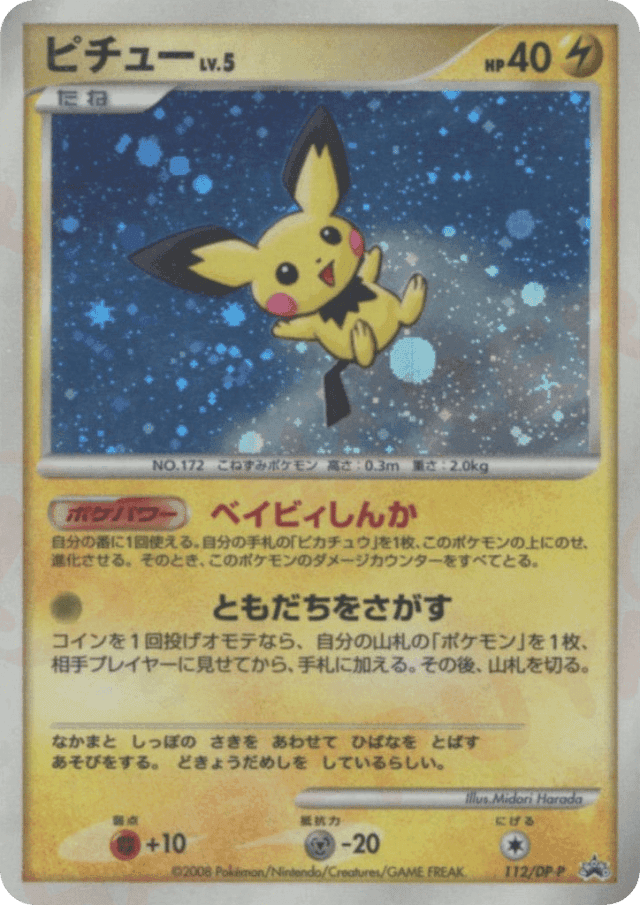 Once during your turn (before your attack), you may put Pikachu from your hand onto Pichu (this counts as evolving Pichu) and remove all damage counters from Pichu.