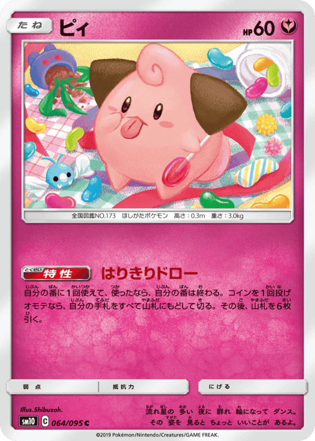 Excitable Draw自分の番に1回使えて、使ったなら、自分の番は終わる。コインを1回投げオモテなら、自分の手札をすべて山札にもどして切る。その後、山札を6枚引く。