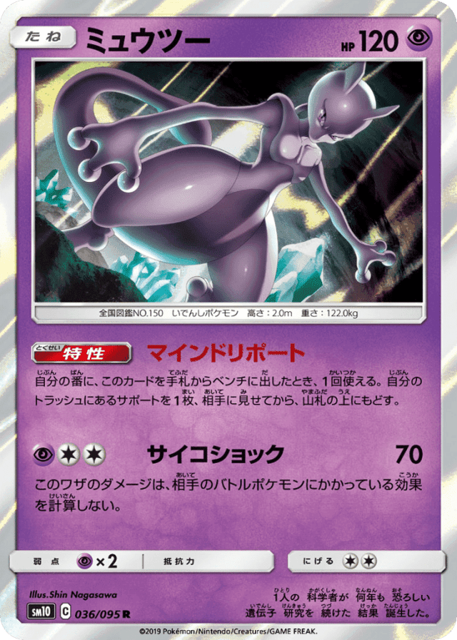 Mind Report自分の番に、このカードを手札からベンチに出したとき、1回使える。自分のトラッシュにあるサポートを1枚、相手に見せてから、山札の上にもどす。