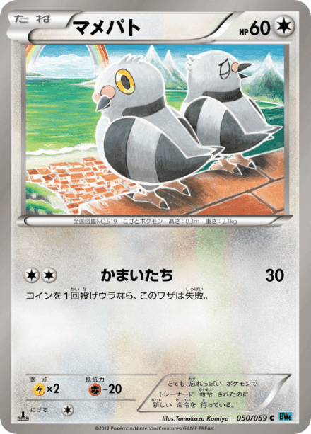 フリーズボルト (Freeze Bolt) is a Japanese expansion of the Pokémon Trading Card Game in the Black & White series, released in July 2012 and catalogued as BW6. The set is listed with a total of 65 cards and a printed total of 59, indicating a standard release supplemented by additional or secret cards. It contains the typical mix of Pokémon, Trainer, and Energy cards from the Black & White era, and collectors can expect cards across common to rare rarities, including holographic cards and a few special-print or promotional additions.