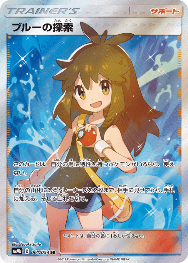 このカードは、自分の場に特性を持つポケモンがいるなら、使えない。 自分の山札にあるトレーナーズを2枚まで、相手に見せてから、手札に加える。そして山札を切る。 サポートは、自分の番に1枚しか使えない。