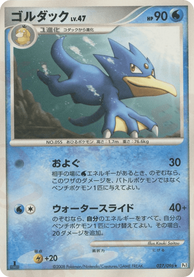 You may move all Energy cards attached to Golduck to 1 of your Benched Pokémon. If you do, this attack does 40 damage plus 20 more damage.