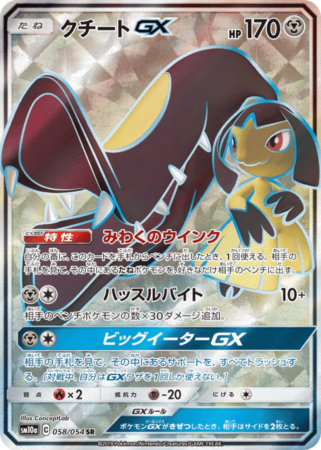 Captivating Wink自分の番に、このカードを手札からベンチに出したとき、1回使える。相手の手札を見て、その中にあるたねポケモンを、好きなだけ相手のベンチに出す。