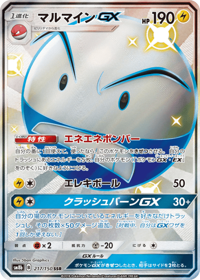 自分の場のポケモンについているエネルギーを好きなだけトラッシュし、その枚数×50ダメージ追加。[対戦中、自分はGXワザを1回しか使えない。]