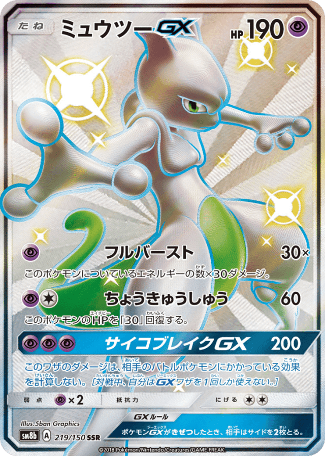 Psystrike-GX200Cost: 3このワザのダメージは、相手のバトルポケモンにかかっている効果を計算しない。[対戦中、自分はGXワザを1回しか使えない。]