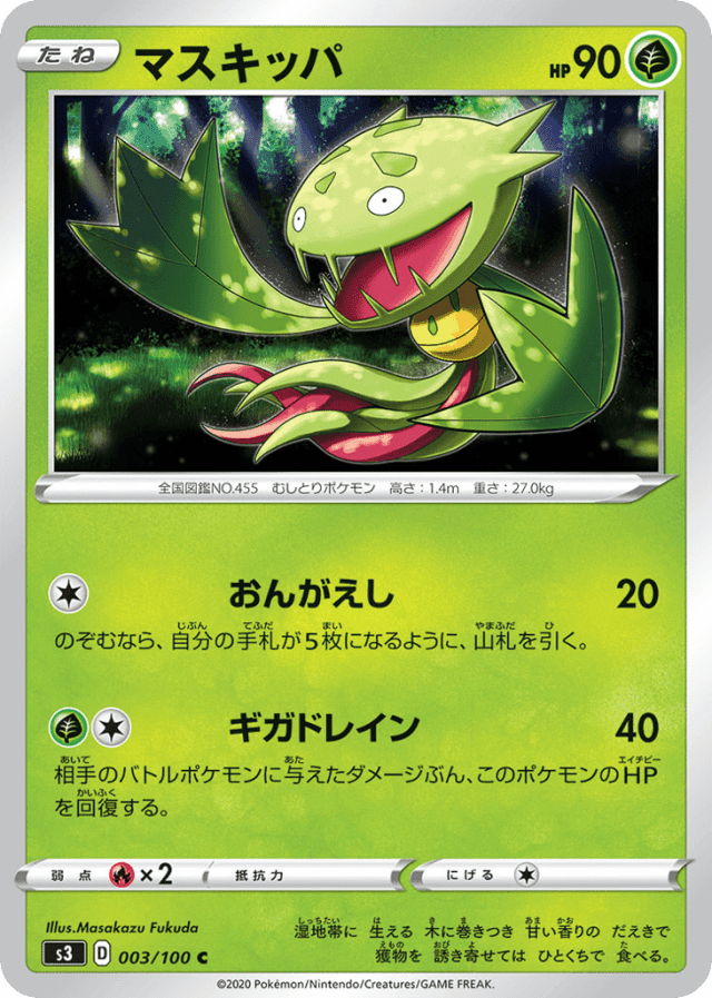 Giga Drain40Cost: 2相手のバトルポケモンに与えたダメージぶん、このポケモンのHPを回復する。