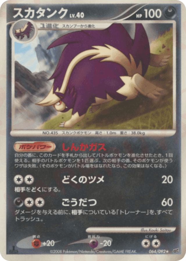 Once during your turn (before your attack), when you play Skuntank from your hand to evolve 1 of your Active Pokémon, you may choose 1 of the Defending Pokémon. If that Pokémon tries to attack during your opponent's next turn, that attack does nothing.
