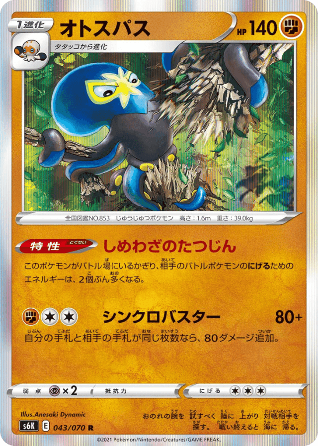 Chokehold Masterこのポケモンがバトル場にいるかぎり、相手のバトルポケモンのにげるためのエネルギーは、2個ぶん多くなる。