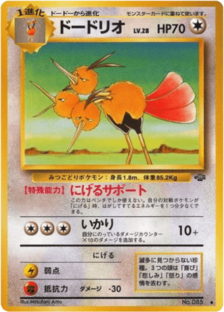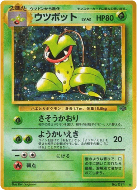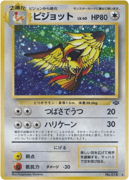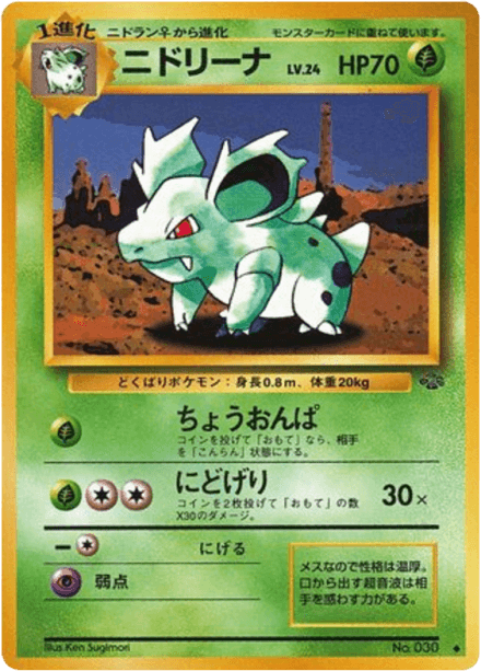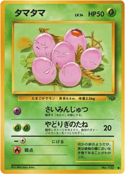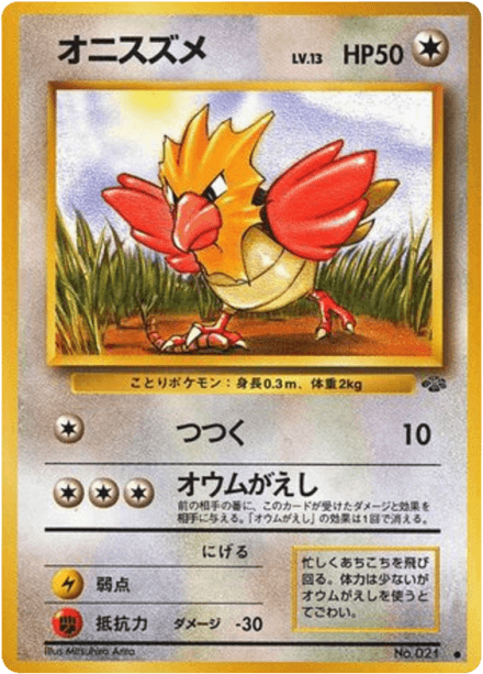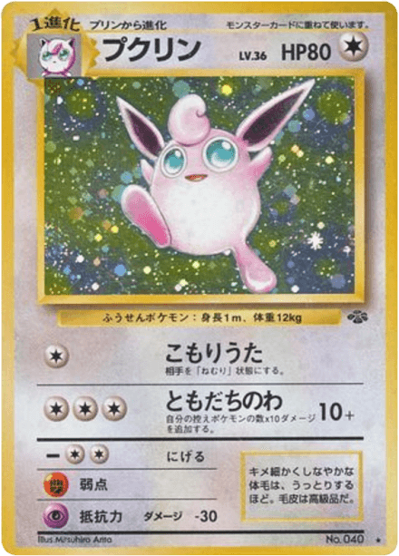ポケモンジャングル (translated as "Jungle") is an early Japanese expansion for the Pokémon Trading Card Game released on March 5, 1997 as part of the Original series. The set contains 48 cards and follows the base-era releases that expanded the card pool for Japanese players. Collectors can expect the typical mix of Pokémon, Trainer, and basic Energy cards found in early sets, with a general nature- and wildlife-oriented theme consistent with the Jungle name. As a Japanese-language base-era release it is often collected for its early artwork, printings, and place in the game's original expansion history.