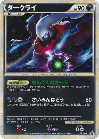 If you have Cresselia in play, each of Darkrai's attacks does 20 more damage to the Defending Pokémon (before applying Weakness and Resistance).