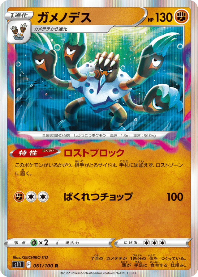 Lost Blockこのポケモンがいるかぎり、相手がとるサイドは、手札には加えず、ロストゾーンに置く。