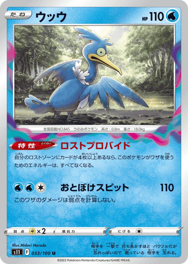 Lost Provide自分のロストゾーンにカードが4枚以上あるなら、このポケモンがワザを使うためのエネルギーは、すべてなくなる。
