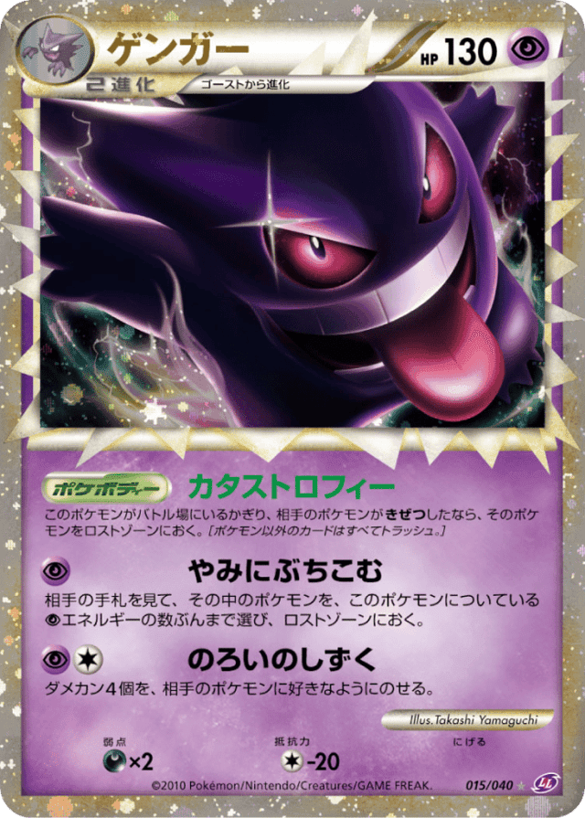As long as Gengar is your Active Pokémon, if any of your opponent's Pokémon would be Knocked Out, put that Pokémon in the Lost Zone instead of discarding. (Discard all cards attached to that Pokémon.)