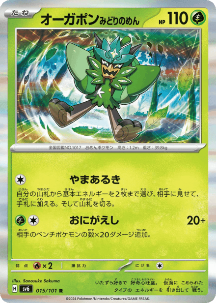 変幻の仮面 (Mask of Change) is a Japanese expansion for the Pokémon Trading Card Game in the Scarlet & Violet series, released on April 26, 2024. The set is listed with 133 cards and a printed total of 101, and it is a standard Japanese physical release rather than an online-only product. It occupies the Scarlet & Violet timeline and contains the typical assortment of Japanese-language Pokémon TCG cards. Collectors can expect Pokémon, Trainer and Energy cards across the usual range of rarities and art variants common to Scarlet & Violet-era sets, appealing to set completers and fans of Japanese printings.
