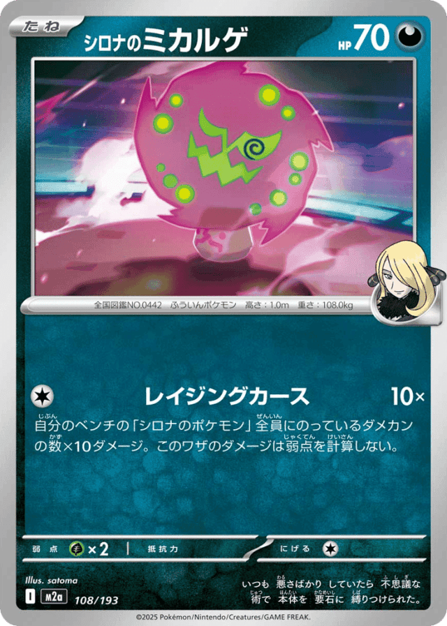 Raging Curse10×Cost: 1自分のベンチの「シロナのポケモン」全員にのっているダメカンの数×10ダメージ。このワザのダメージは弱点を計算しない。