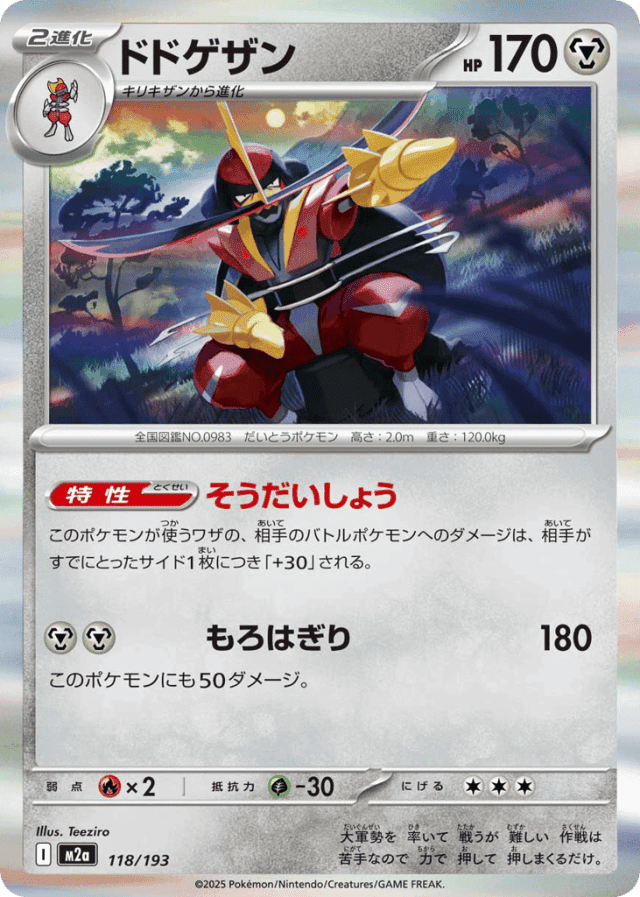 このポケモンが使うワザの、相手のバトルポケモンへのダメージは、相手がすでにとったサイド1枚につき「+30」される。