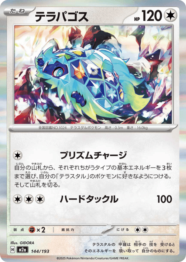 Prism ChargeCost: 1自分の山札から、それぞれちがうタイプの基本エネルギーを3枚まで選び、自分の「テラスタル」のポケモンに好きなようにつける。そして山札を切る。
