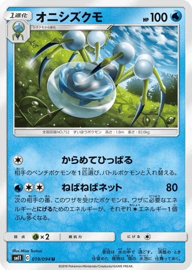 Sticky Web80Cost: 3次の相手の番、このワザを受けたポケモンは、ワザに必要なエネルギーとにげるためのエネルギーが、それぞれColorlessエネルギー1個ぶん多くなる。