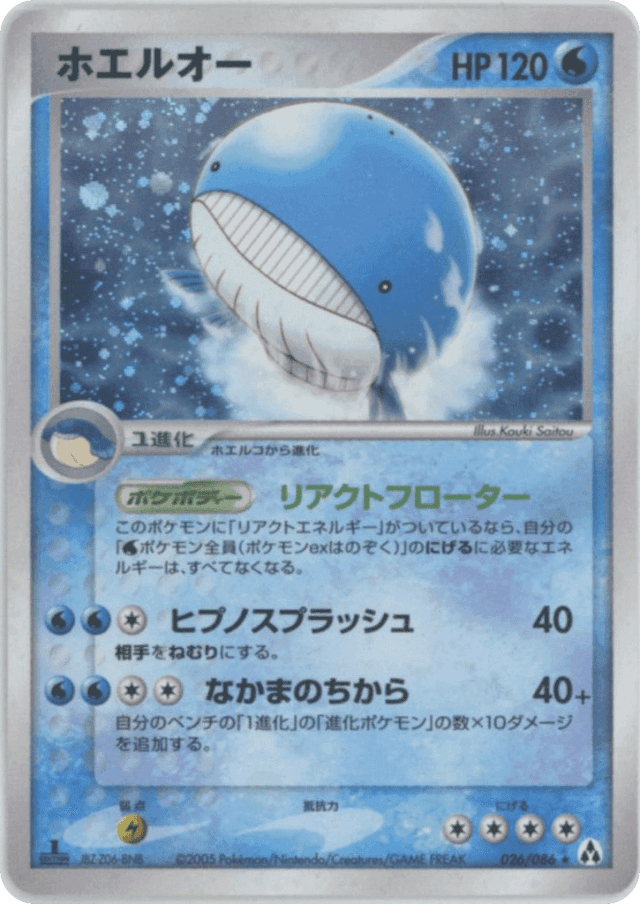 As long as Wailord has any React Energy cards attached to it, the Retreat Cost for each of your Water Pokémon (excluding Pokémon-ex) is 0.