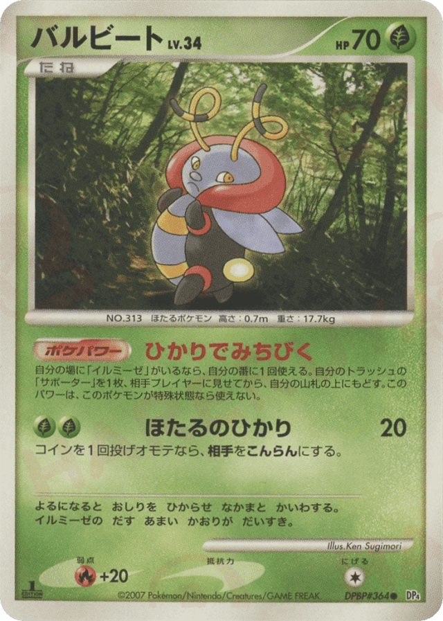 Once during your turn (before your attack), if you have Illumise in play, you may search your discard pile for a Supporter card, show it to your opponent, and put it on top of your deck. This power can't be used if Volbeat is affected by a Special Condition.